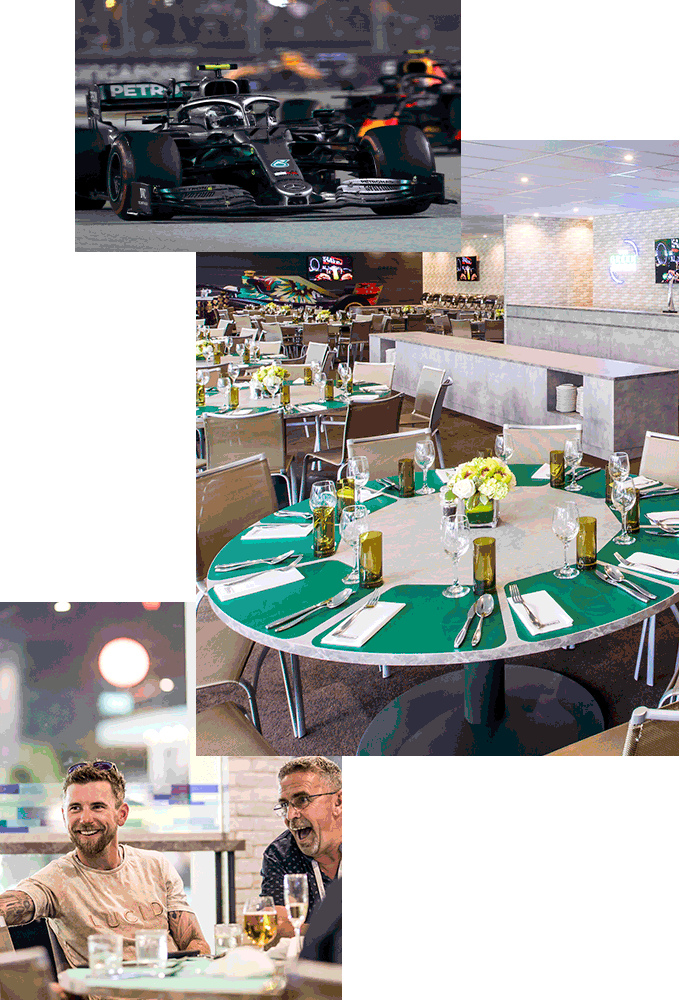 With an air conditioned food area serving a large variety of food on the menu, an open bar offering complimentary wines and beers and a great outdoor balcony view to watch the race you can have a splendid time with your family, friends or clients at the Green Room!